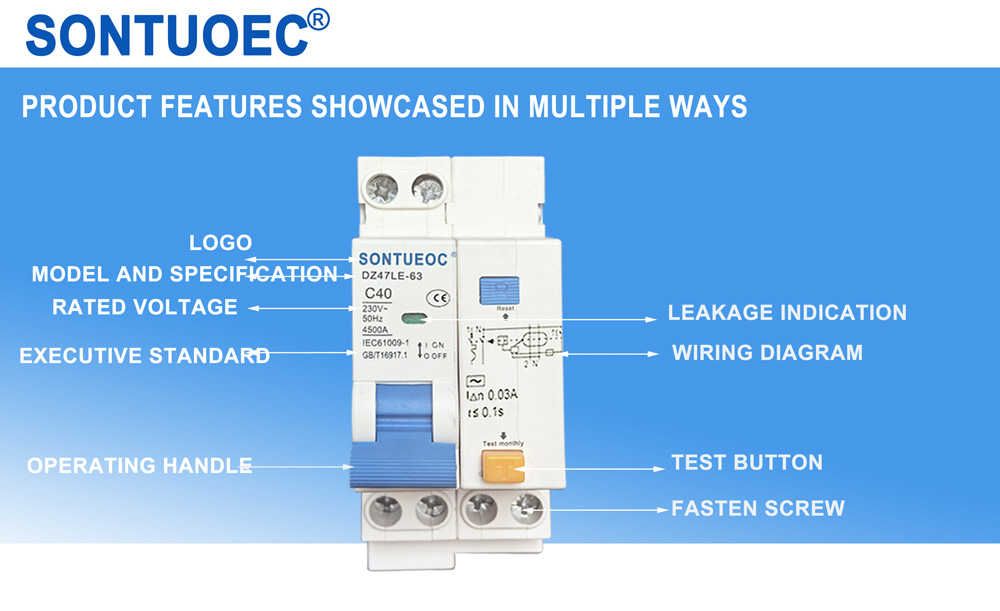 SONTUOEC is een van de Chinese leveranciers/fabrikanten die gespecialiseerd is in de productie van diverse kleine elektrische apparaten.DZ47LE toepasbaar op een lijn van AC 50/60Hz nominale spanning 230V voor enkelpolig tweedraads, 2-polig of 400V voor 3-polig, 3-polig 4-draads. 4-polig en nominale stroom tot 63A. Het kan de lijn en de motor beschermen tegen overbelasting en kortsluiting. Het kan ook worden gebruikt voor onregelmatige lijnconversie en onregelmatige motorstart. Het voldoet aan de normen van IEC61009.1.