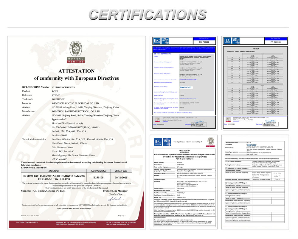 SONTUOEC is een van de Chinese leveranciers/fabrikanten die gespecialiseerd is in de productie van diverse kleine elektrische apparaten. De STID-63-serie RCCB 230V 63A aardlekschakelaar kan het foutcircuit onmiddellijk uitschakelen bij gevaar voor schokken of aardlekken op de hoofdlijn. Het is dus geschikt om het gevaar voor schokken en brand veroorzaakt door aardlekken te voorkomen. Het kan worden gebruikt in circuits tot eenfasig 240V, driefasig 415V, 50 of 60Hz. Voldoet aan de IEC61008-1-norm.